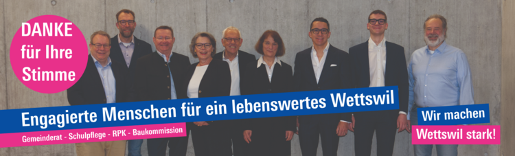 Die Kandidatinnen und Kandidaten sowie die gesamte FDP Wettswil danken den Stimmbürgerinnen und Stimmbürgern von Wettswil herzlich für ihre Stimmen und das ausgesprochene Vertrauen. Dieses Vertrauen ist für uns Auftrag und Motivation zugleich, auch in Zukunft engagiert und lösungsorientiert für unsere Gemeinde zu arbeiten.